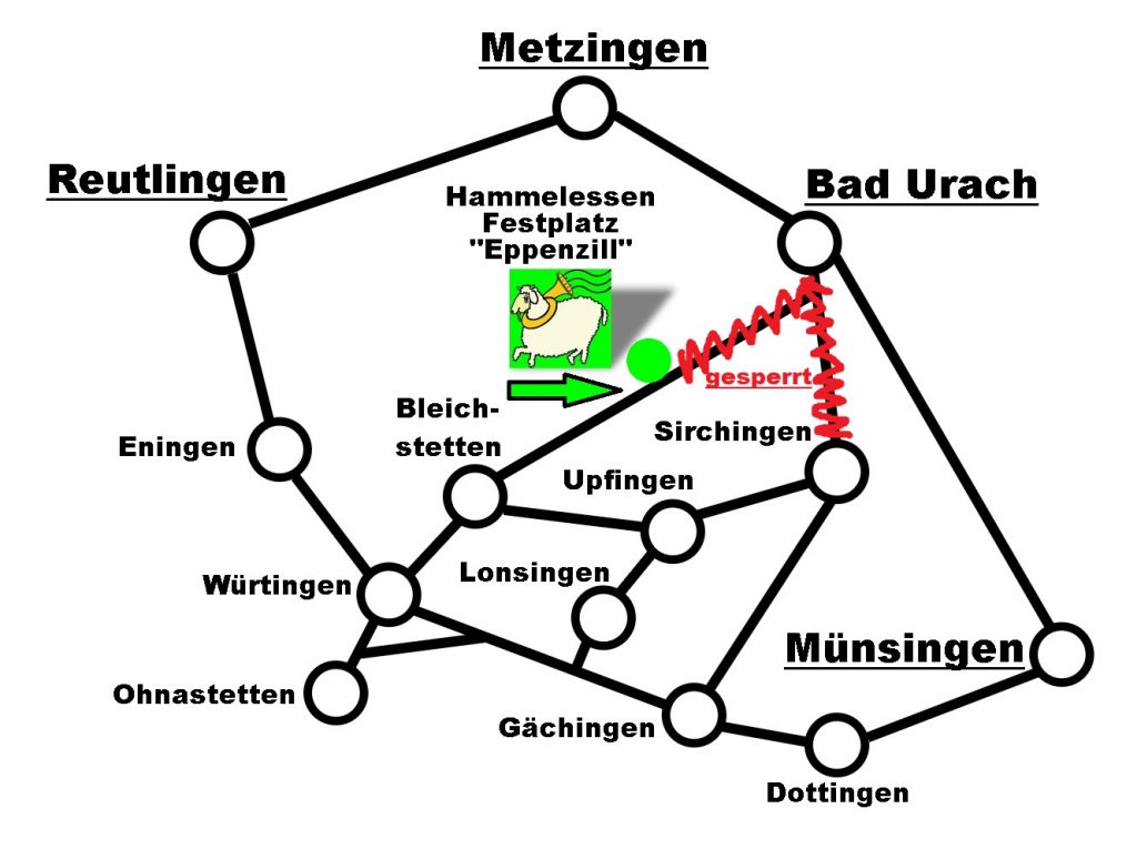 Die Sirchinger- sowie die Hannersteige sind dieses Jahr an Himmelfahrt gesperrt, es ist somit nicht möglich mit einem KFZ-Fahrzeug von Bad Urach aus direkt nach Eppenzill zu fahren, bitte nutzt die Umleitungen und fahrt